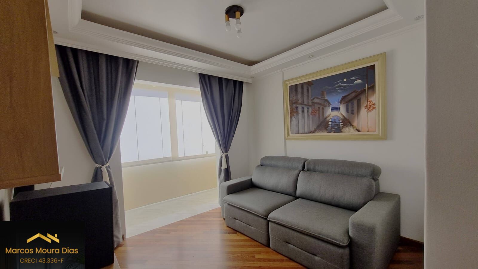 Sacada com envidraçamento e cortina de rolo