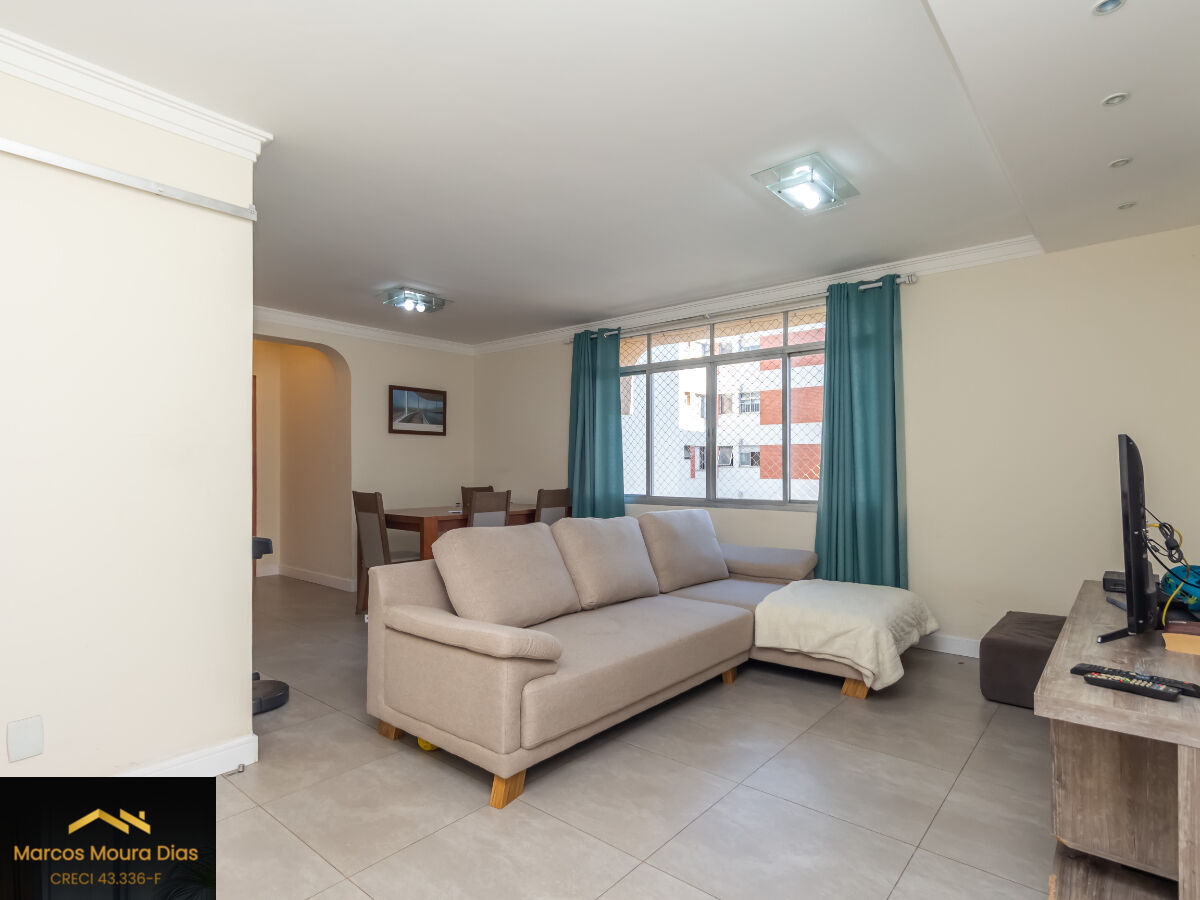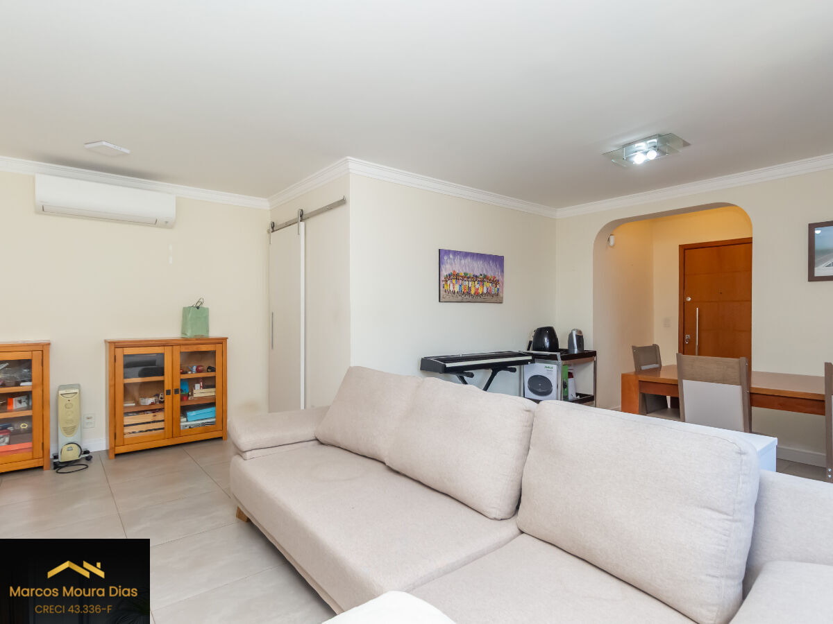 Com uma área útil de 110 m², este imóvel localiza-se no 9º andar e recebe muito sol na maior parte do dia.