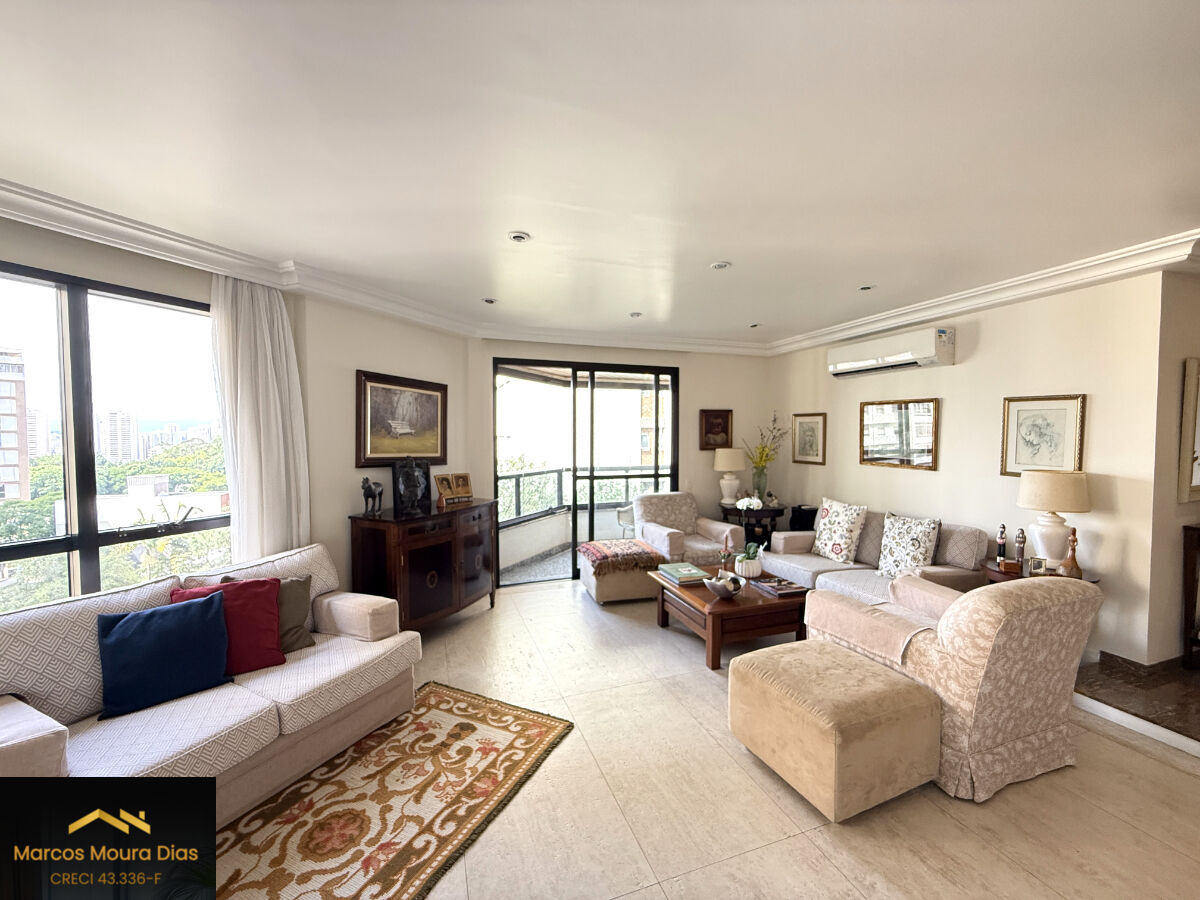 Sala ampla living para 3 ambientes ( hall de entrada com elevador privativo, sala de estar e sala de jantar) , 4 dormitórios com armários planejados com ar-condicionado sendo 3 suites , oferece espaço suficiente para famílias grandes ou para quem precisa de um escritório em casa. O imóvel conta com uma varanda aconchegante, um closet bem planejado e um jardim que proporciona um toque de natureza ao ambiente.