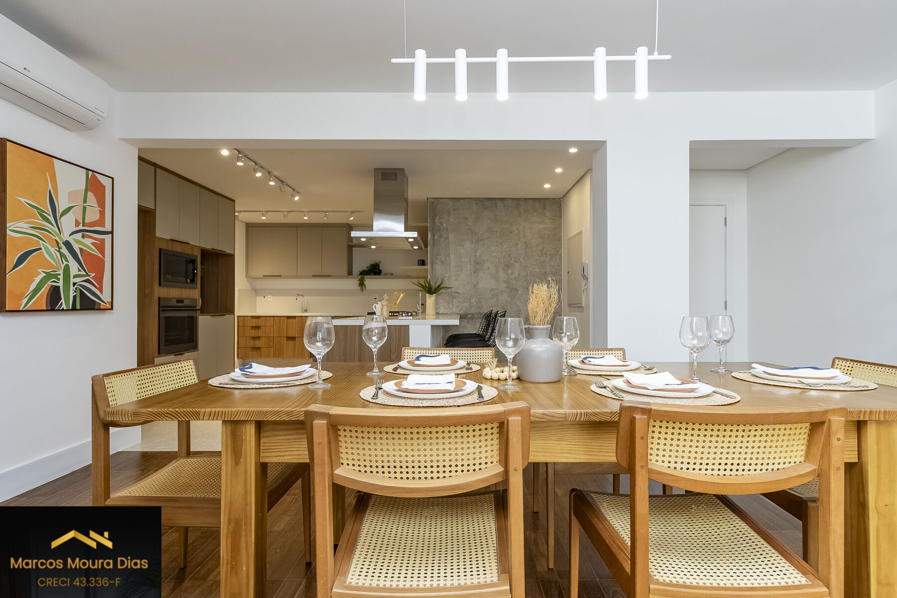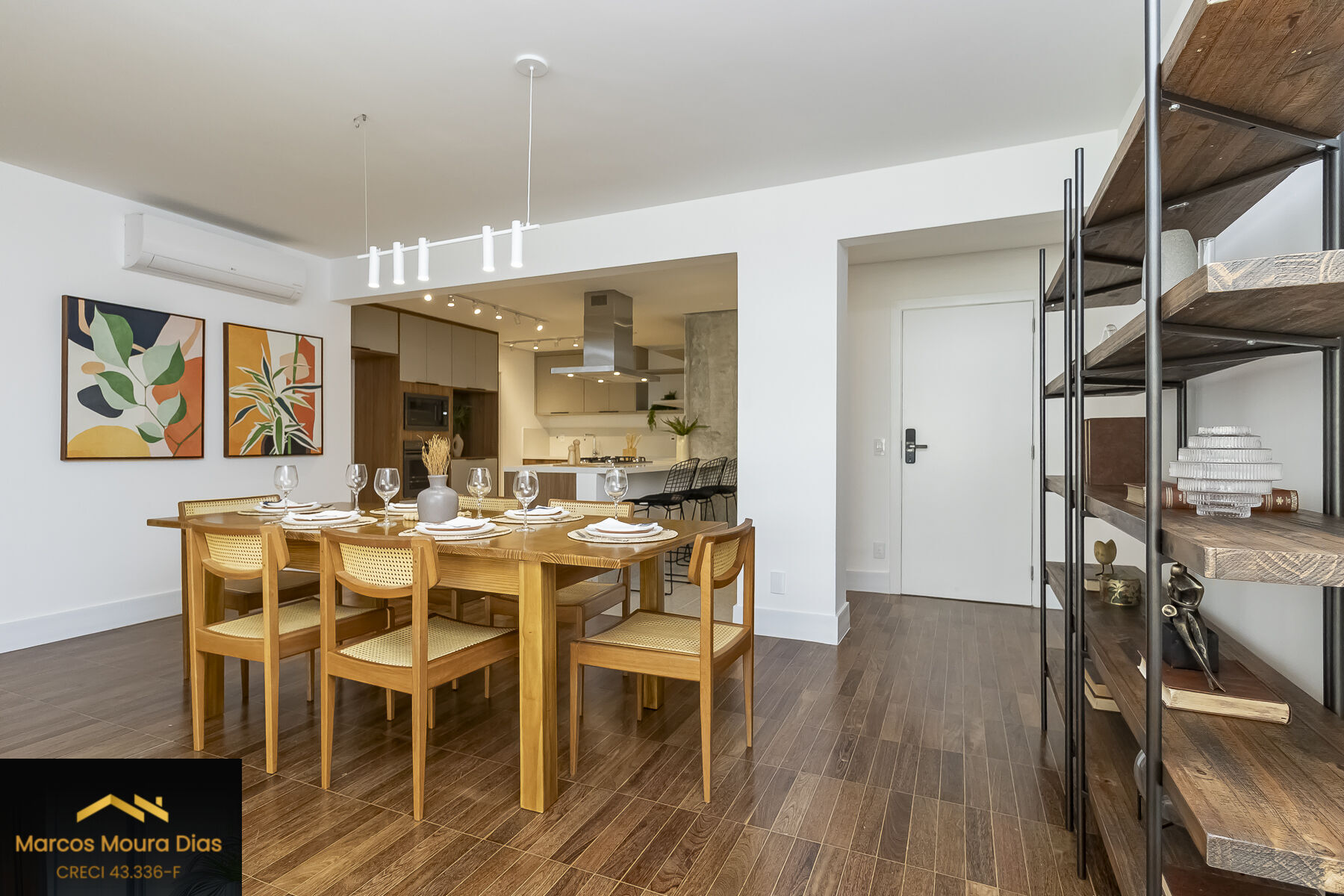 O piso da sala, no tradicional tacão de madeira Sucupira, foi finamente restaurado. O projeto é complementado por acabamentos de alto padrão, marcenaria sob medida na cozinha, área de serviço e banheiros, além de eletrodomésticos instalados (cooktop, coifa, forno elétrico) e aquecedor a gás.